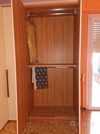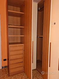 Armadio angolare completo di cabina interna e cassettiera. Rifiniture panna e ciliegio. Misure 225X165 prof. 62. Smontaggio a cura acquirente.