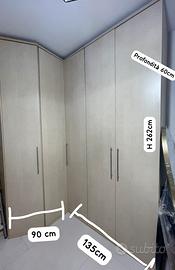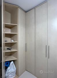 Armadio angolare in legno chiaro con maniglie argentate realizzato da mobilificio (no Mondo