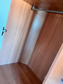 Armadio angolare composto da una sola anta. Dotato di una mensola interna. Con 2 aste per appendere abiti. No trasporto e montaggio.