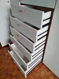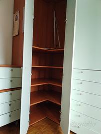 Armadio come si vede è molto capiente e la sua parte angolare è molto profonda , possiede grande cassettiera incorporata e comodini possono essere aggiunti da parte sinistra o da destra secondo esigenze .
