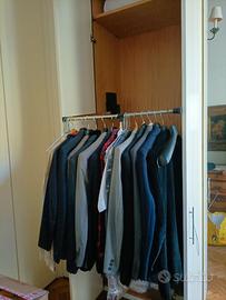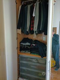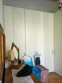 armadio angolar con due ante a specchio 8 cassetti in metallo smaltato e microforato per traspirazione tre servetti per facilitare presa abiti vari ripiani misure lato lungo 288 lato corto 227 altezza 295 smontaggio e trasporto a carico di chi compra armadio sarà disponibile da fine luglio inizi di agosto