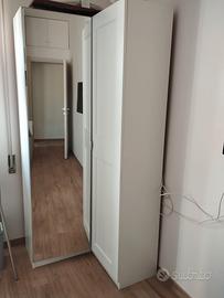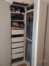 Armadio angolare Pax con anta a specchio Acquistato e montato a luglio 2025 Altezza 2 metri Larghezza 110 x 110 cm (vedere immagine per dettaglio delle dimensioni) 5 cassetti 3 ripiani 2 appendi abiti Vendo già smontato.