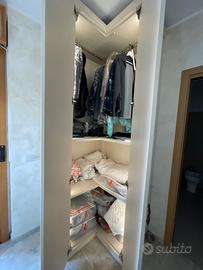 Armadio angolare beige chiaro con luce led interna ,come nuovo senza nessun segno di usura Altezza 267 cm Profondità 57 cm Lunghezza ante 44,5cm