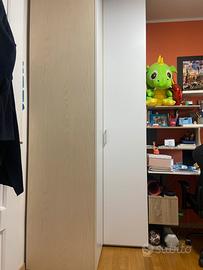 Armadio angolare in puro ciliegio chiaro. Larghezza 108, profondità 58, altezza 260.