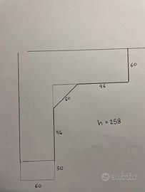 Vendo armadio con angolo cabina MorettiCompact in ottime condizioni, colore bianco con cassettoni in verde come da foto allegate. Misura lineare 2,6 mt più modulo finale scarpiera libreria di 60x50 ottime finiture, materiale eccellente.