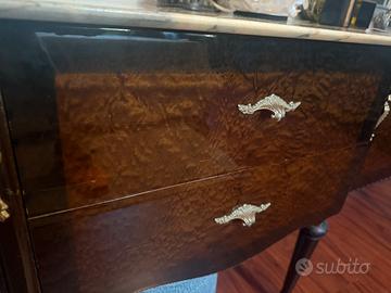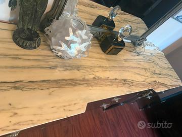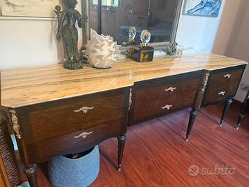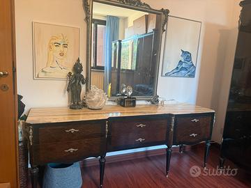 Vendo armadio anni 20 con credenza in marmo con specchio antico argentato. Misure credenza lunghezza 191, profondità 53, altezza 71 Misure armadio lunghezza 3,10, profondità 60, altezza 190