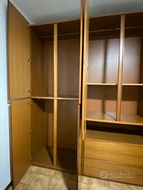 Armadio ante battenti color noce, con 4 cassetti. Si vende già smontato.