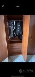 Vendo armadio con ante battenti ed angolo cabina armadio. Nell’angolo sono incluse due mensole e faretti di illuminazione a rete. 2 ante a specchio con inclusa all’interno cassettiera, e 2 ante battenti. In totale lunghezza 3 metri, profondità 55 cm e profondità dell’angolo 120 cm. Altezza dell’armadio 2.60 metri. Incluso nel prezzo cassettiera e 2 comodini. Ottime condizioni smontaggio e ritiro a carico dell’acquirente