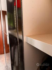 Al suo interno è diviso in due sezioni uguali con ripiano da 3,5 cm e due barre appendi abiti.