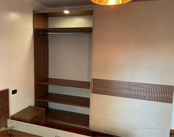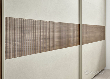 Armadio 2 ante scorrevoli, conveniente e moderno, finitura Noce Scuro, Argilla e Serigrafia Noce - L.220 H.218 P.64 - disponibile in pronta consegna a 449,00 euro - possibilità di spedizione in tutta Italia (da calcolare in base alla località)