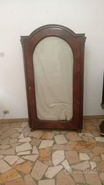 Vendesi bellissimo armadio antico , d'epoca, in legno massiccio, con vetrina e mensole, tutto foderato internamente. Occasione.