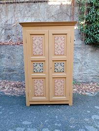 Armadio in abete. Antiquariato. Realizzato alla fine del '700, è stato poi dipinto ad inizio '900. Antiquariato. Larghezza massima 117 cm. Profondità massima 45 cm. Altezza 187 cm. Ritiro in loco.