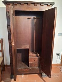 Vendo bellissimo armadio artigianale in legno massello, finemente intagliato a mano con scene cavalleresche e stemmi medievali.