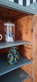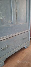 Bellissimo armadio in legno massello, restaurato in stile shabby chic con finitura grigio decapato che lascia intravedere la venatura originale del legno. Mobile originale d’epoca, caratterizzato da linee semplici e autentiche, con segni del tempo che ne valorizzano il fascino e la storia. Internamente in legno naturale, dotato di ripiani robusti e spaziosi, ideale come armadio, dispensa, mobile da ingresso o complemento d’arredo per ambienti rustici, country o moderni. Presenta un cassetto inferiore capiente e ferramenta originale. CONDIZIONI: Buone condizioni generali, con segni di usura coerenti con l’età del mobile (vedi foto). Struttura solida e perfettamente funzionale. MISURE: H185×72,5×P45 Perfetto per: casa di campagna appartamenti arredati in stile shabby o industrial negozi, showroom o allestimenti