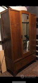 Unico sortello centrale con specchio. Intarsi sulle parti fisse. Parte inferiore con cassettone. Piccolo danno nel pannello posteriore .