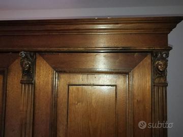 Armadio antico, ‘800 romagnolo, di valore, interamente in legno di noce, con piedi a cipolla e tre facce in alto a fianco le ante, tenuto benissimo, visibile se veramente interessati, vendo