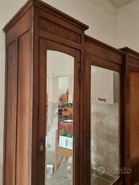 Vendo elegante armadio d’epoca in legno massello, databile da fine '800 ai primi del ’900, in stile Liberty.