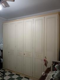 Armadio in stile classico, solido e ben tenuto, con appena 12 anni di vita. Il colore è un elegante bianco avorio leggermente caldo, arricchito da delicate decorazioni floreali in legno liscio che gli conferiscono un tocco raffinato.