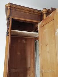 Armadio camera da letto a 3 ante con grandi specchi. Misure: alt. 229 + una bordura centrale che sporge altri 20 cm. lung. 211, prof.45 + sporgenza 8cm. Adatto per chi ama il restauro perché ha un piedino staccato e qualche lavoretto da fare. Visibile a Sassari
