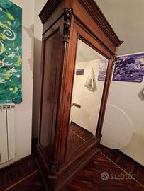 ARMADIO GRANDE PER RAGAZZA STILE CLASSICO ANTICO CON SPECCHIO GRANDE SU ANTA PRINCIPALE E CASSETTO SPAZIOSO ALLA BASE ,E DISEGNI IN STILE CORINZIO A DESTRA E A SINISTRA DELL'ALTEZZA DELL'ARMADIO.COLOR CILIEGIO!