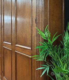 Armadio antiquariato noce massello, lavorazione falegnameria intarsiato, finitura bassano. Cassettiera interna, rivestimento in tessuto damascato colorazione neutra. Pezzo unico nel suo genere! Misure: L300 P60 H264 Venduto sottocosto!