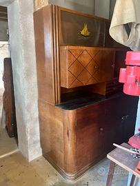 Armadio originale Art Deco, con le barche dipinte a mano sul vetro.