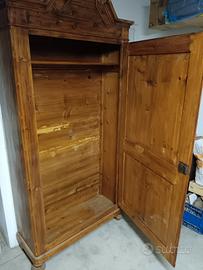 Armadio arte povera provenienza Valle di Illasi (Verona) dei primi del Novecento in abete completamente restaurato. Misure: altezza 225 cm, larghezza 103, profondità 38.