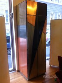 Armadio scenografico realizzato su misura per Atelier, dal forte impatto estetico. Dimensioni: Larghezza: 80 cm Profondità: 60 cm Altezza: 260 cm Materiali e lavorazioni: Struttura in metallo Inserti in ottone, rame e acciaio Superfici spazzolate con effetto moiré Lavorazione rivettata a vista Il frontale è caratterizzato da vetri colorati che creano un disegno geometrico/floreale stilizzato, con un gioco di luci molto elegante e contemporaneo. Interno: Rivestimento in legno Asta appendiabiti Pezzo unico, realizzato artigianalmente per arredo di Atelier. Ideale per ambienti di design, boutique, showroom o per chi vuole un elemento d’arredo davvero distintivo. Oggetto importante e fuori standard, sia per dimensioni che per presenza scenica. Non è il classico armadio “da nascondere”, è fatto per essere visto. Prezzo impegnativo, valuto offerte congrue prima della visione
