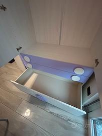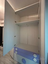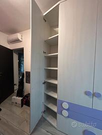 Vendo armadio "Asanghi camerette" di lentate sul seveso, armadio su misura. Ad angolo in ottime condizioni, colore legno chiaro con dettagli lilla e maniglie tonde.