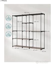 Armadio, Guardaroba Autoportante, con Barre Appendiabiti, Portabiti Ripiani in Tessuto, Struttura in Metallo, 182 x 43 x 182 cm. Nuovo mai aperto! Euro 35 ! Fabio 3922071423