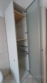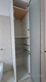 vendo armadio alto da bagno IKEA, colore bianco con anta in vetro satinato. Interno molto funzionale con: ripiani regolabili 2 cestelli estraibili in metallo altezza 237 larghezza 50 profondita 60 cm Ideale per bagno o lavanderia. Condizioni buone Ritiro zona Piazzale delle Province Pagamento in contanti