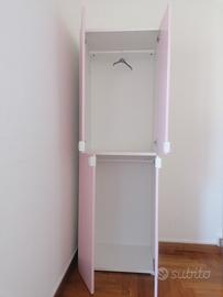 Armadio bambina con due stecche appendiabiti rosa e bianco