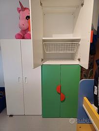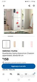 Vendo per inutilizzo armadio ikea modello smastad, con due ceste (una sopra una sotto) una mensola, un bastone appendiabiti interno e ganci appendiabiti sulla parte esterna, ultima foto presa dal sito IKEA. Il modello è quello nuovo, ma quasi uguale.