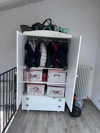 Armadio marca Pali di colore bianco tenuto benissimo con 2 ante e 2 cassetti, Larghezza 95 Profondità 60 Altezza 1.75 é ancora da smontare ritiro in Torino.