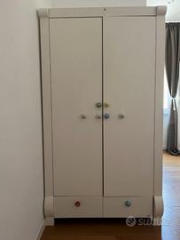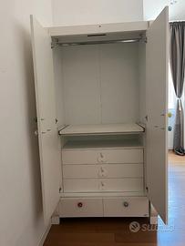 Vendo armadio bianco con doppia anta superiore, asta interna per appendere grucce, piano estraibile (fasciatoio) + tre cassetti interni + un cassetto alla base.