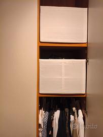 Armadio 5 ante bianco latte con profili e ripiani interni legno.