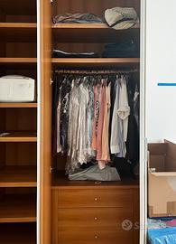 Armadio bianco spazioso con interno in legno.