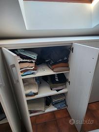 Vendo splendido armadio su misura di colore bianco con eleganti finiture grigrie, ideale per mansarde, sottotetti o spazi con altezze ridotte. Non si tratta di un mobile industriale, ma di un prodotto di alta falegnameria, solido e duraturo. Comprato 11 mesi fa. Il mobile è composto da due moduli indipendenti che offrono una grande capacità di contenimento nonostante la forma compatta. Margine di trattabilità per chi conclude velocemente. Misure: Larghezza 160 cm x2, Altezza 114 cm , Profondità 61,5 cm. Lo vendo perché devo trasferirmi in un'altra città.