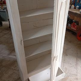 Vendo come da foto armadio bianco ,con 3 ripiani originali e un cassetto, pomelli di vetro. Porta in battuta . periodo fine 1800.