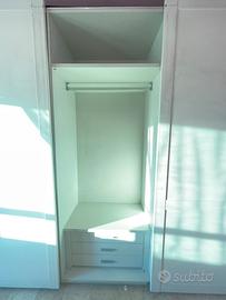 L'armadio è stato usato presenta delle imperfezioni, una maniglia é rotta e l'anta centrale è un po' difettosa . L' armadio è smontato.