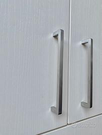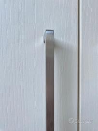 Armadio a 4 ante a battente realizzato in bilaminato colore bianco panna, finitura venata, maniglia L 20 con finitura cromosat.