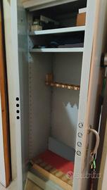 Vendesi Armadio Blindato pesante ed estremamente robusto a 2 ante, marca: "Tank". Armadio per uso professionale, di ottima fattura, adatto come porta fucili, Cassaforte per armi, orologi, gioielli, valori, tabacchi. Completo di doppie chiavi e di ripiani. Facilmente smontabile per il trasporto, mediante bullonatura esclusivamente interna (previsto aiuto allo smontaggio o posso farla trovare già smontata). Meccanismo a tripla espansione (aste di chiusura interne che bloccano la porta in alto, in basso e lateralmente) Prezzo da occasione.