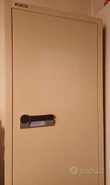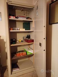 armadio blindato LIPS-VAGO con dimensioni base cm. 80, altezza cm. 200, profondità cm. 50, con doppia apertura e doppia chiave, sia manuale che a combinazione digitale, corredata da 2 ripiani interni in metallo + 2 artigianali in legno, colore beige, peso aprossimativo Kg. 250, condizioni perfette pari al nuovo, ottimo come portafucili, preziosi e documenti, senza ammaccature o segni visibili, ritiro a cura dell'acquirente, facile e comodo da prelevare perchè è a piano terra.
