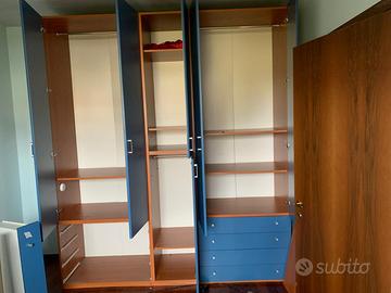 "Vendo armadio 5 ante color blu marino per inutilizzo dovuto a trasferimento, usato e in buono stato.