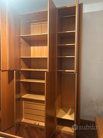 Armadio in noce nazionale color miele lung. 2.60 prof. 52 accessoriato di cassettiera, ripiani e porta abiti