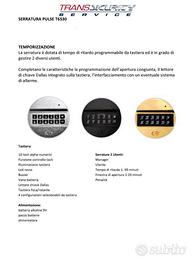 INSERZIONE N°: S.49 Contattateci direttamente con un semplice messaggio whatsapp al daremo risposta a tutte le vostre richieste. Noi di Trans Security Service S.N.C. siamo un'azienda di Verona che dal 1988 si occupa di vendita e noleggio casseforti. Cercate nel web "Trans Security Service S.N.C." troverete molti altri modelli di casseforti e armadi. I nostri prodotti sono prodotti usati e noi li ripristiniamo direttamente mantenendo intatte le caratteristiche di sicurezza,di funzionamento e relative certificazioni, consentendo così al cliente la libertà di personalizzare il prodotto(colore e allestimento). Modello cassaforte: 1 Battente H 100 cm Marca: Armadio Bordogna Colore RAL(Esterno/Interno): 5014 *Colore a scelta tra i colori Ral inseriti nell'offerta(1013, 1015, 5014, 6020, 6021, 7001, 7015, 7022, 7030, 7035, 7038, 7040, 7047, 9010, 9005, 9006 senza variazione di prezzo) Dimensioni esterne: H. 1000 L. 600 P. 500 + 50 mm Dimensioni interne: H. 900L. 550 P. 400 mm Peso: 100 Kg N° ripiani: 3 Serratura a Chiave (Dupplice esemplare) *E possibile montare una combinazione meccanica o elettronica. E' possibile ritirare direttamente la cassaforte in azienda o richiedere preventivo per trasporto e istallazione.. Non è garantita la disponibilità immediata, ma potrebbero essere richiesti 4/5 gg lavorativi. Per Info: mail o telefono (sms\WhatsApp) Facendo riferimento al numero dell'inserzione , in questo caso "INSERZIONE N°: S.49".