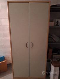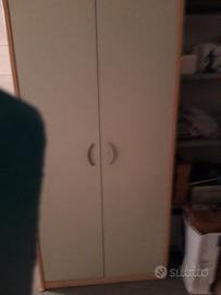 vendesi armadio bi colore nocciola con 2 ante color verde chiaro dotato di asta per abiti e ripiani misura cm 60x 90x 200 h L'armadio si trova a Roncadelle (BS)