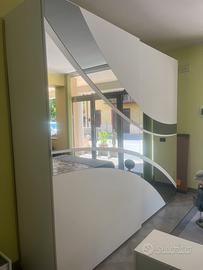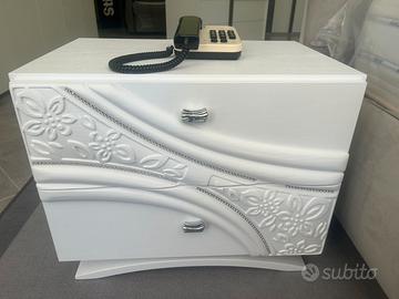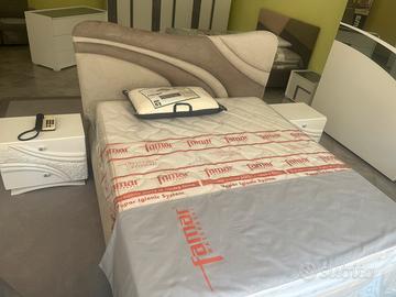 Bellissimo armadio con due ante scorrevoli con specchio, completa di comodini e comò e specchiera con letto imbottito come da foto!
