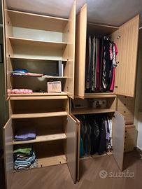 Armadio in legno color olmo composto da 4 moduli componibili a piacere.