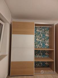 Armadio a 2 ante scorrevoli con ripiani e barra appendiabiti